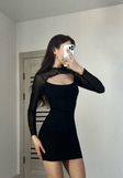 Чорна міні-сукня, з напів відкритим верхом та сіточкою